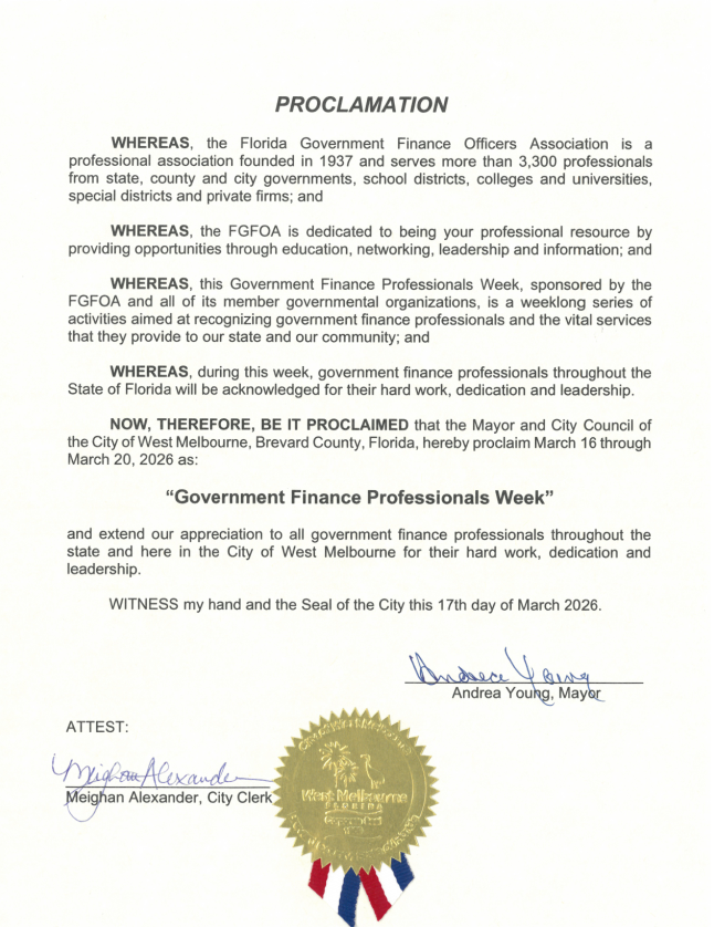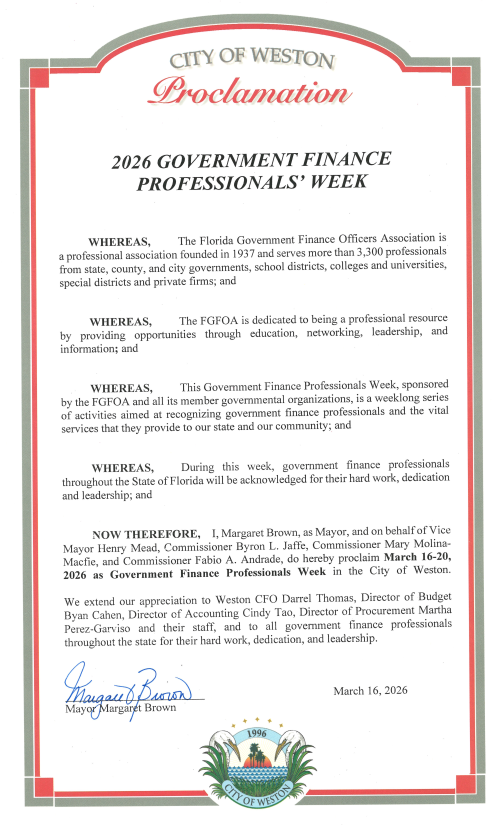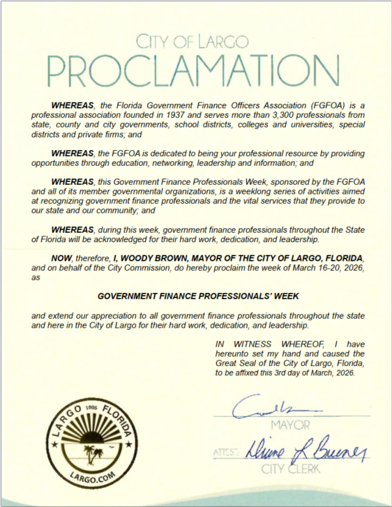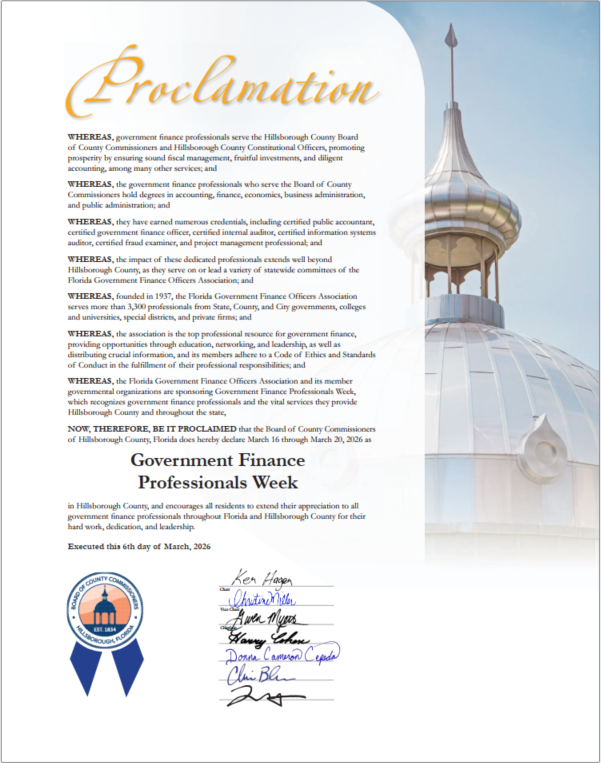 FGFOA will be sponsoring Government Finance Professionals Week, a weeklong series of activities aimed at recognizing government finance professionals and the vital services that they provide for local government and the community in which they serve. During this week, government finance professionals throughout the state will be recognized and acknowledged for their hard work, dedication and leadership.